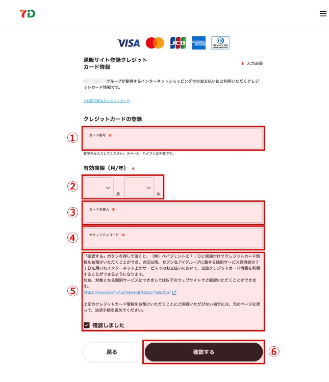 通販サイトクレジット情報画面にて、必要事項をご入力ください。