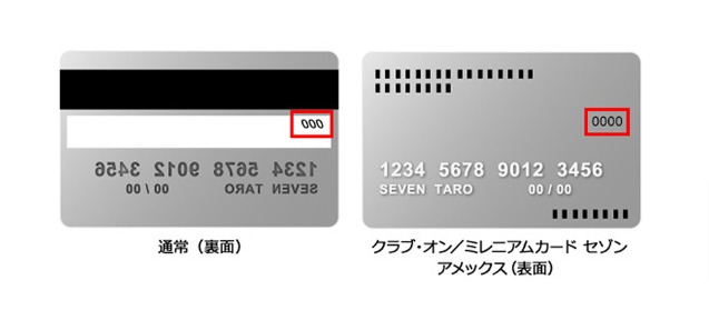 このセキュリティコードは通常クレジットカード裏面のサイン欄に表示されている数字の末尾3桁です(クラブ・オン/ミレニアムカード セゾン アメックスは表面の4桁の数字)。