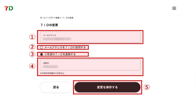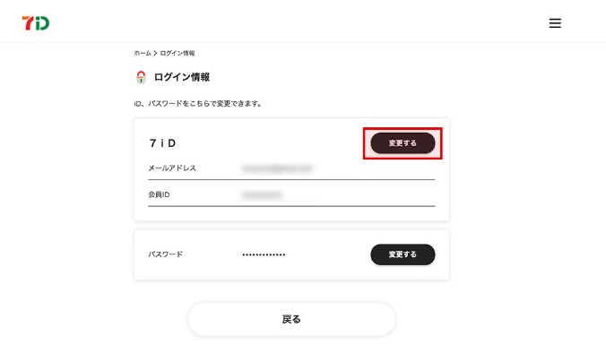メールアドレスまたは7iDを変更する場合は、7iDの「変更する」を押下します。